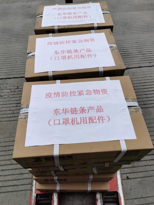 在當前“新冠肺炎”防控依然嚴峻的形勢下,口罩是全國各地急需緊缺物資,而口罩機鏈條是口罩生產(chǎn)設備的必備零件。東華于2月10日開工,當天深夜,國內(nèi)市場部接到兩個特殊訂單,一個是福建某客戶急需300條口罩機鏈條,希望盡快發(fā)貨;另一個是廣東某客戶需要1000條口罩機鏈條,要求2月20日前必須交貨。