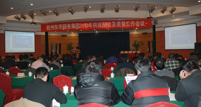 1月12日,東華在余杭大廈隆重召開2013年供應(yīng)配套及質(zhì)量工作會議,共同商討貫徹落實宣董事長提出的“1+N”提升方案,不斷提高外購?fù)鈪f(xié)件質(zhì)量,滿足客戶需求,加強供應(yīng)鏈建設(shè)等事項。集團采購委員會成員、各副總、各事業(yè)部副部長、技術(shù)質(zhì)量處長及相關(guān)人員與來自各地的供應(yīng)商代表計200余人參加會議。