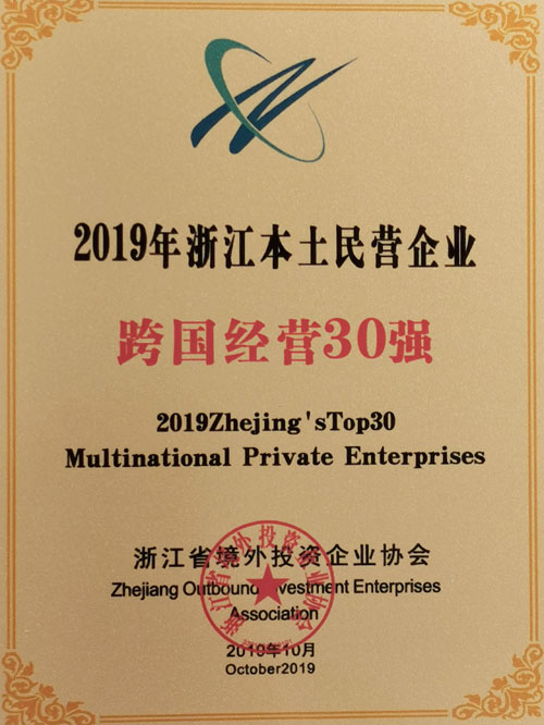 近日,浙江省境外投資企業(yè)協(xié)會發(fā)布了“2019年浙江本土民營企業(yè)跨國經營30強”榜單,東華鏈條集團首次上榜,排名第27位。