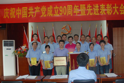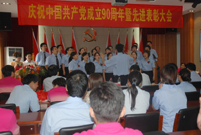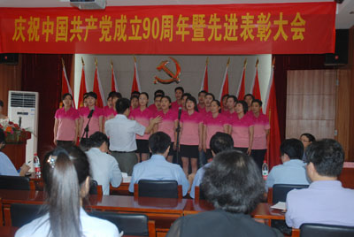 會后,進行了紀念建黨90周年員工紅歌演唱會,來自各部門的5個合唱隊、12個獨唱和1個小品進行了激烈的角逐,經過評審團公平公正的評分,最后評出了合唱和獨唱、小品前三等獎,與會領導向獲獎團隊和個人頒發了證書并合影留念。