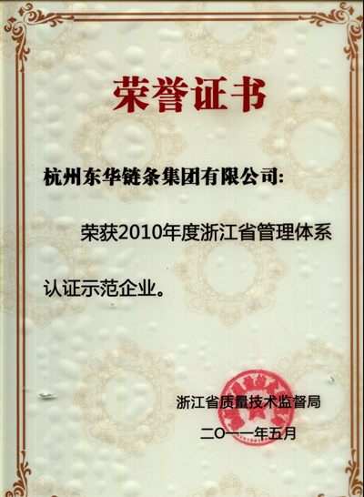 東華榮獲“2010年度浙江省管理體系認證示范企業”榮譽稱號