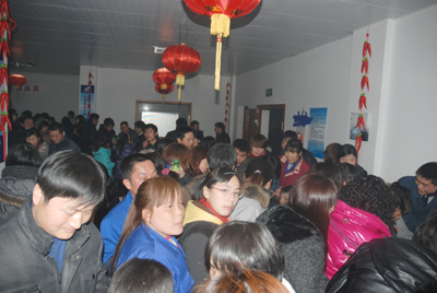 今年的“鬧元宵”游園節目豐富多彩,既有傳統的猜謎語、釣魚、看字表演活動,也有投羽毛球、吹乒乓球等新式活動,這些活動全部由各分工會設計、承辦。每個小節目都有禮品送,十多個節目玩下來,有些員工手上拿滿了禮品,再去抽獎。今年的獎品豐富,有MP5、電飯煲、床上用品、吹風機、洗發水等等?,F場擠滿了游園的員工及家屬,尤其是孩子們臉上堆滿了笑容,大人、孩子都爭先恐后地去搶著玩游戲,好不熱鬧。