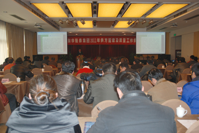 1月15日,東華集團在臨平賓館隆重召開2011年供方配套及質量工作會議。董事長宣碧華、副總經理袁立華、采購副總經理張寶康及各事業部長、各部門技術質量相關人員、供方代表共150多人參加會議。