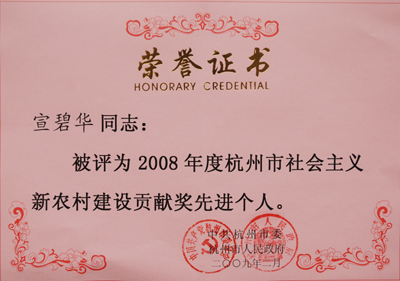 宣碧華被授予“杭州市新農村建設先進個人”稱號