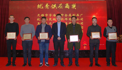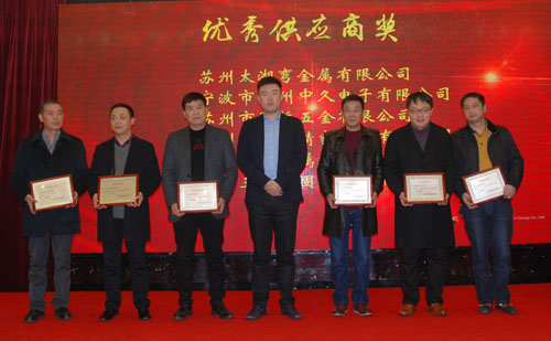 會上表彰了12家“優(yōu)秀供應(yīng)商”和6家“優(yōu)秀配套服務(wù)獎”供應(yīng)商。副董事長宣成向獲獎供應(yīng)商代表頒獎并合影留念。