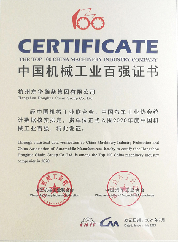 東華鏈條集團(tuán)再次榮登中國機(jī)械工業(yè)百強(qiáng)榜,排名第55位,這是東華鏈條集團(tuán)連續(xù)六年榮登中國機(jī)械工業(yè)百強(qiáng)榜,也是中國鏈傳動(dòng)行業(yè)唯一上榜企業(yè),展現(xiàn)出東華強(qiáng)勁的健康發(fā)展活力。