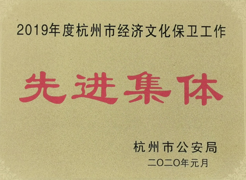 日前,公司被杭州市公安局授予“2019年度杭州經濟文化保衛工作先進集體”榮譽稱號。公司一直以來經過對治安管理加大投入,尤其是強化保衛隊伍組織建設及重點部位防盜硬件設施、技術裝備投入的有效運行,公司保衛工作成效顯著,連續多年被授予“杭州經濟文化保衛工作先進集體稱號。