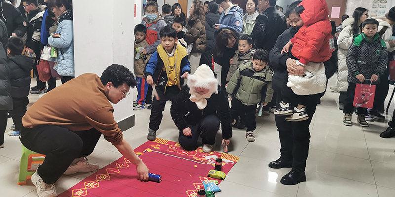 在公寓職工活動(dòng)室,到處高掛著喜慶的燈籠,洋溢著節(jié)日的氛圍。公司各事業(yè)部、職能部門共12個(gè)分工會(huì)分別設(shè)置游戲節(jié)目,不僅有元宵節(jié)傳統(tǒng)的猜燈迷、投壺、飛鏢、套圈、投沙包等,也有新意的倒著說(shuō)、掌上明珠、財(cái)源滾滾、摸彩珠等豐富多彩的小節(jié)目。現(xiàn)場(chǎng)隨處可見(jiàn)員工們帶著孩子一起參加活動(dòng),他們互相合作,協(xié)調(diào)配合完成各種游戲活動(dòng),大大增進(jìn)了親子之間的互動(dòng)交流。