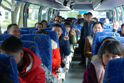 1月25日中午,公司南廠區(qū)大門(mén)外分外熱鬧,9部掛著祝福員工一路平安、新年快樂(lè)橫幅的大巴車(chē)一字排列,等待著送300余名員工回家過(guò)春節(jié),濃濃的節(jié)日氛圍掛在每個(gè)員工的臉上。