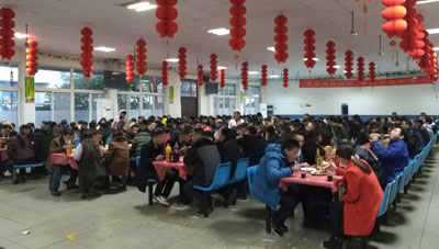 1月25日晚,東華總部南區(qū)和新區(qū)食堂燈火通明,紅燈高掛,歡聲笑語,400多名外地留在杭州過年的員工在這里舉辦一場(chǎng)“同吃年夜飯,歡度除夕夜”年會(huì)活動(dòng)。吃的都是普通的家常菜,但熱熱鬧鬧的過年氣氛卻提前來到了。